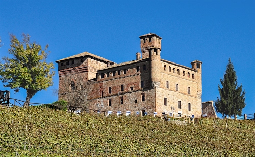 Tag: alberi, finestre, castello, torri, verde, azzurro, cielo, torrette, erba, torrione, prato, staccionata, marrone, vigneto, campagna.