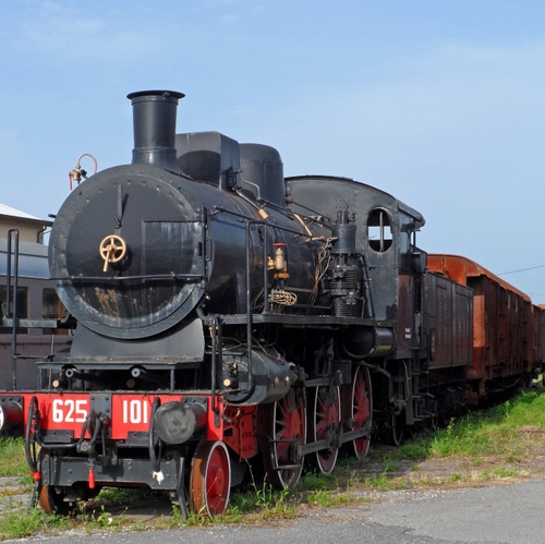 Tag: treno, locomotiva, numeri, nero, ruote, rosso.