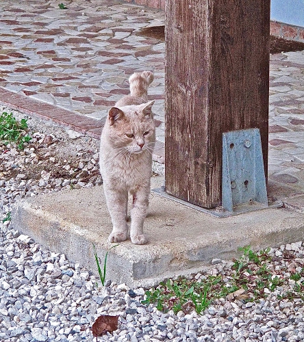 Gatto sulla ghiaia.