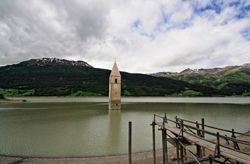 Il lago di Resia (Reschensee in tedesco) è un lago alpino artificiale situato in val Venosta a 1.498 m nel comune di Curon Venosta (BZ), a nord del vicino lago di San Valentino alla Muta. Con la sua capacità di 120 milioni di metri cubi è il lago più grande dell'Alto Adige.La cima del vecchio campanile di Curon (Graun) emerge dalle acque ed è tuttora visibile; la struttura risale al 1357, mentre la chiesa che vi era annessa era stata costruita nel 1832-38.In inverno, quando il lago gela, il campanile è raggiungibile a piedi. Una leggenda racconta che in alcune giornate d'inverno si sentano ancora suonare le campane (che invece furono rimosse dal campanile il 18 luglio 1950, prima della formazione del lago).