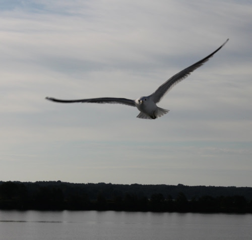 Gabbiano (in russo: чайка = ciaika) in volo sulle rive del lago Onega (Russia del nord).