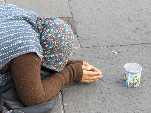 Il barattoletto davanti la questuante dimostra che è una vera professionista. Simpaticamente Rolando dei Colli |