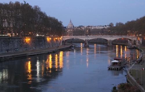 Le prime luci al crepuscolo sul Tevere, in una bella giornata di primavera.