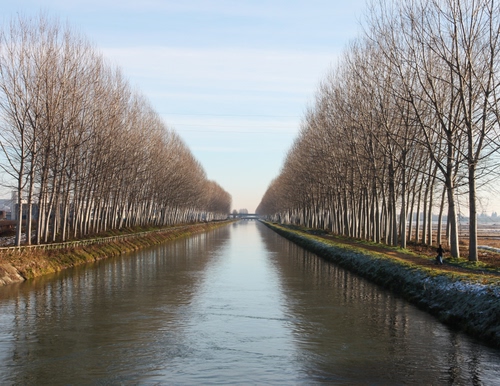 Tag: alberi, canale, acqua, fiume, prospettiva, sponde, argini, rami, pioppi, filari.