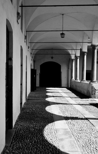 Tag: colonne, ombre, archi, portico, porte, chiostro, bianconero, lampione, sassi, ombra, ferri, portici, lampioni.