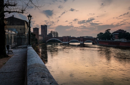 Altri tag (senza riscontro): lungofiume, arcate, sera, parapetto, controluce, riflessi, sponde, torri.