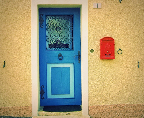 Tag: porta, blu, rosso, lettere, batacchio, cassetta, posta, azzurra, vetro, grata, buca.