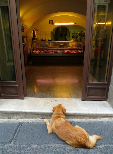 Questa fa tenerezza! Secondo me avresti ottenuto uno scatto più interessante mettendoti alla stessa altezza del cane, quindi scattando da più in basso e facendoci vedere il suo punto di vista