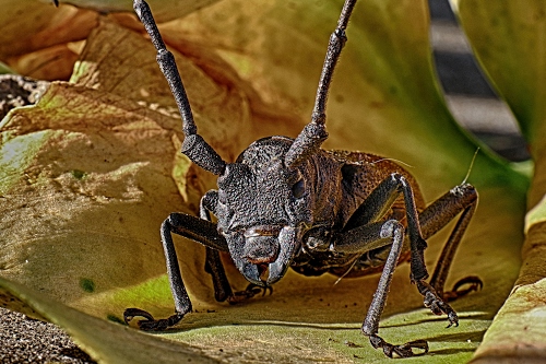Donatella rispondo volentieri alla tua domanda dicendo che si tratta di una fotografia macro di un esemplare di CERAMBYX CERDO la cui lunghezza media (Wikipedia) è di 5–11 cm.