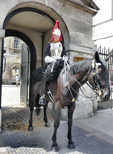 un cavaliere appartenente al Queen's Life Guard davanti all'House Guards Parade