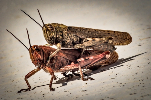 grazie, Pia, mi piace pensare che la cavalletta sotto abbia finito il carburante e quella sopra la spinga per arrivare al distributore. |