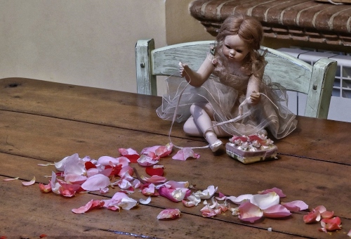 Tag: tavolo, bambola, petali, sedia, legno, rosa, giocattolo, capelli, spalliera, ballerina, verde, nastro, marrone, assi, filo, seduta, braccia, rose.