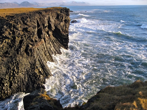 Tag: onde, mare, scogliera, schiuma, scogli, acqua, azzurro, roccia, erba, rocce, bianco, costa, promontorio, falesia, paesaggio, montagne.