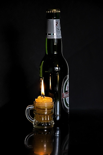 Tag: fiamma, candela, bottiglia, birra, tappo, bicchiere, nero, etichetta, riflessi, giallo, vetro, cera, boccale, manico, etichette, riflesso, stoppino.
