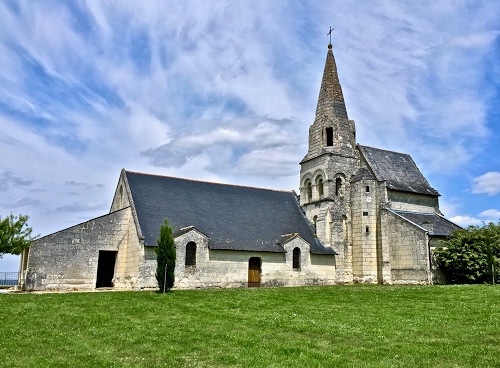 Non ne so molto, si tratta di un'antica chiesa in cui mi sono imbattuto poco prima di giungere in bicicletta a Saumur, percorrendo le sponde della Loira. Al tempo (29 maggio 2015) era interdetta al pubblico perchè in procinto di ristrutturazione. Penso comunque possa risalire all'epoca medioevale.