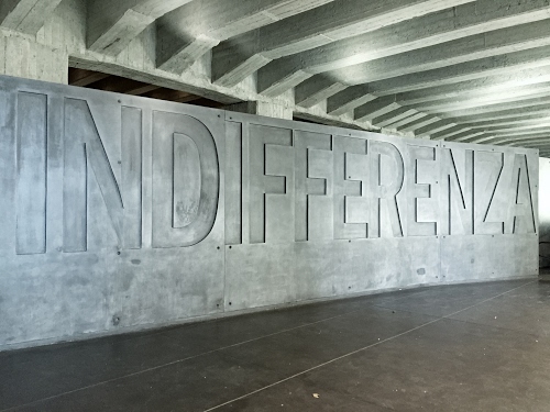 Altri tag (senza riscontro): memoria, aggettivo, passaggio, monito, chiodi, orizzontali, parole, pilastri, inizio, sotterraneo, dettaglio, palazzo, prospettiva, sotto, ventuno, asfalto, ampio, pedonale, shoah, cubitali, centrale, pannelli, milano, molto, sostantivo, metropolitana, tunnel, parete.