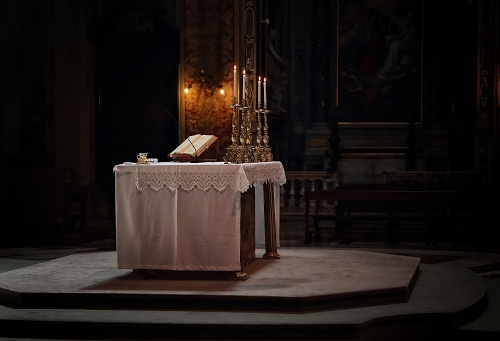 Tag: altare, leggio, luci, candelabri, candele, chiesa, libro, messale, pizzo, bianco, tovaglie, tovaglia, ceri, ampolle, balaustra, fiamme, nero, colonne, candelieri, segnalibro, pedana.