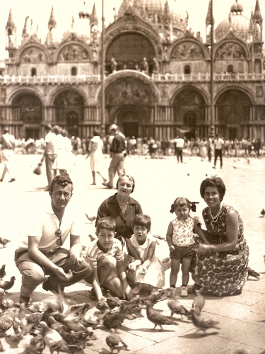 Bella l’idea di mescolare un passato privato (quello del gruppo di famiglia) a quello di tutti. Una foto in un posto facilmente riconoscibile che appartiene a tutti. Tutti abbiamo una foto in San Marco, che è quindi un luogo del passato di tutti ( o quasi). Così ti senti in quel gruppo, indietro nel tempo, in un passato comune. Bell’effetto. Mi piace molto. |