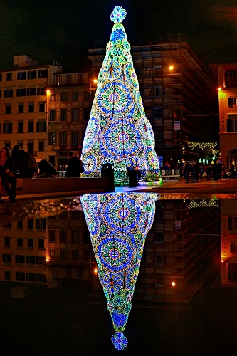 Tag: albero, luci, luminarie, natale, acqua, riflesso, colori, notturno, notte, riflessi, finestre, fontana, case, piazza, palazzi, illuminazione, lampioni.