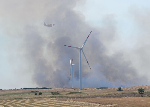 Foto dell'autore Diana Cocco candidata al contest fotografico eolico su Dizy. Data inserimento: mercoledì 9 settembre 2020. Titolo: Minervino Murge - incendio su zona eolica