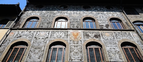 La facciata decorata a graffito, realizzata da Bernardino Poccetti. Firenze via Maggio