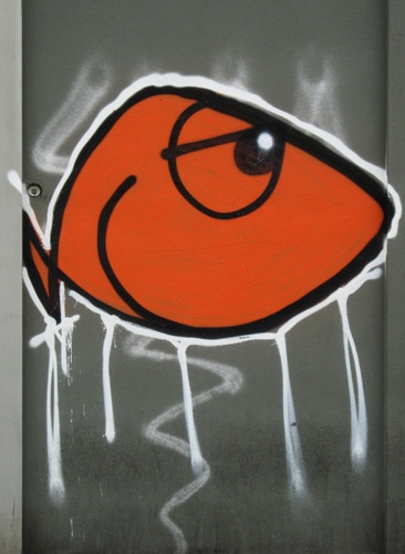 Pescetto sul muro di un edificio in Piazza Greco, a Milano. Fa parte di un'intera serie di pescetti colorati, evidentemente opera dello stesso "graffitaro".