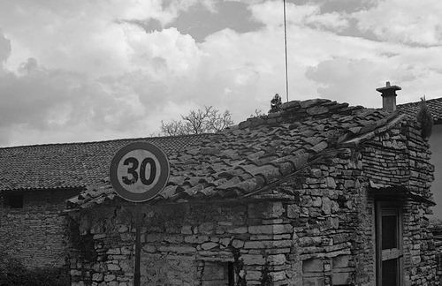 Tag: bianconero, trenta, tetto, cartello, segnale, rudere, numero, tegole, casa, divieto.