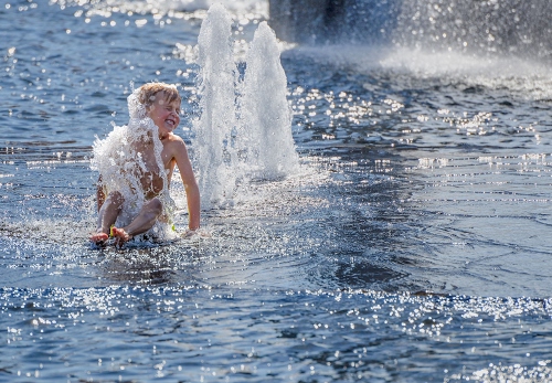Tag: bambino, acqua, fontana, zampilli, gioco, zampillo, spruzzi, gambe, divertimento, istantanea, schiuma, azzurro, braccia, sorriso.