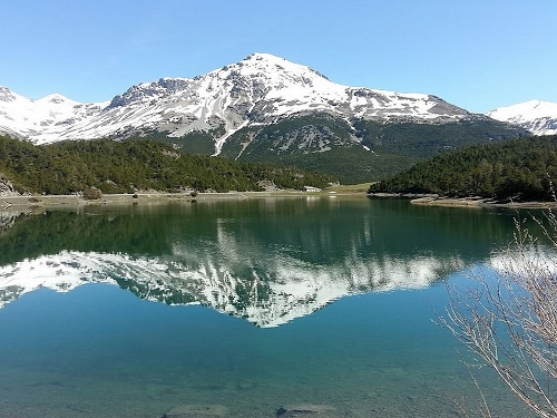 Tag: neve, lago, riflesso, acqua, cielo, montagna, verde, azzurro, rami, alberi, bianco, montagne, boschi, bosco, cime, cima, riva.