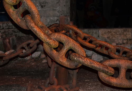 Tag: ruggine, anelli, catena, muro, marrone, catene, ferro, notte, nero, pietre, mattoni, sassi.