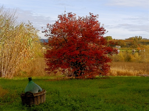 Tag: damigiana, verde, rosso, autunno, prato, albero, foglie, cielo, giallo, erba, alberi, vetro, canne, case, cesto, piante, ottobre, campagna, bambù.