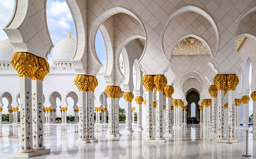 Foto dell'autore Diana Cocco candidata al contest fotografico portico su Dizy. Data inserimento: mercoledì 31 marzo 2021. Titolo: Portico Gran Moschea ad Abu Dhabi