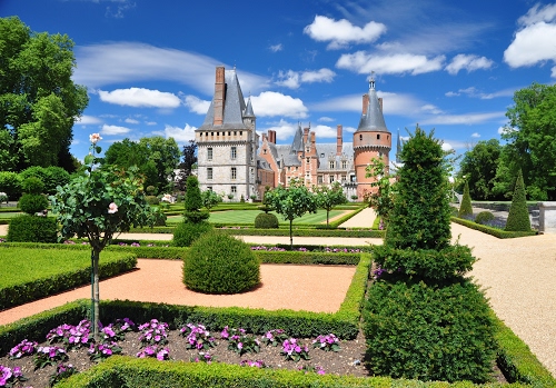 Tag: castello, fiori, giardino, nuvole, alberi, aiuole, torri, piante, verde, cielo, siepi, bianco, parco, finestre, siepe, cespugli, azzurro, vialetti.