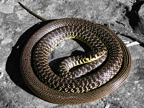 Esemplare di biacco adulto con livrea giallo-nera