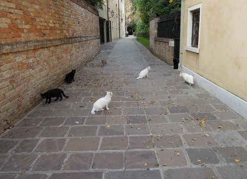 Tag: gatti, vicolo, animali, nero, finestra, bianco, mattoni, muro, strada, via, verde, neri, felini, cinque, alberi.