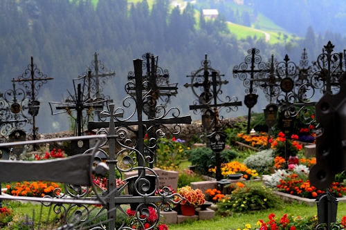 In un fresco mattino d'estate, in questo piccolo e raccolto cimitero di montagna si respirava tranquillità e pace. Alto Adige, agosto 2007.