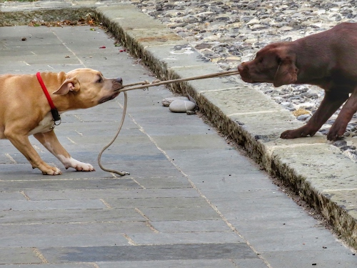 Bella immagine di due cani in lotta e non sedentari ma chi ha vinto? |