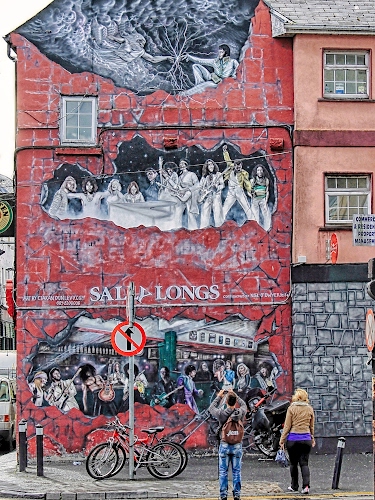 Altri tag (senza riscontro): donna, protesta, marciapiedi, zaino, fotografa, passanti, cantanti, freccia, grigio, strada, pali, band, dipinto, paletti, città, tre, complesso, chitarra, finestra, scritta, metrò, immagine, graffito, ripresa, borsa, arte, elvis, insegna, mura, due, presley, indicazioni, bianconero, musica, parete.