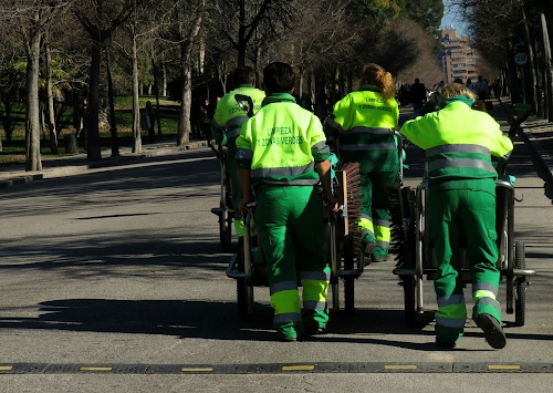 Tag: alberi, strada, divise, viale, verde, ruote, asfalto, quattro, spazzini, operatori, uniformi, giallo, uomini, parco, palazzo, ombre, persone, carrelli, carretti, divisa.