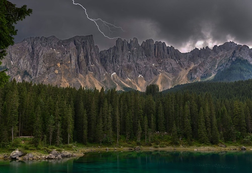 Foto dell'autore Diana Cocco candidata al contest fotografico fulmini su Dizy. Data inserimento: mercoledì 13 aprile 2022. Titolo: Fulmine sul lago di Carezza