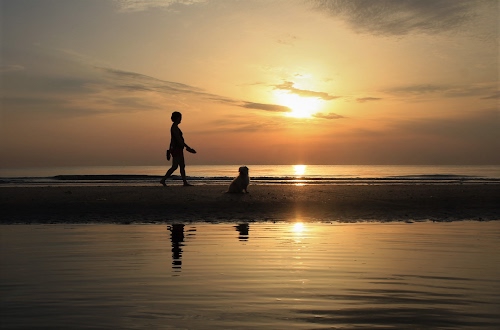 Camminata su una spiaggia invernale.