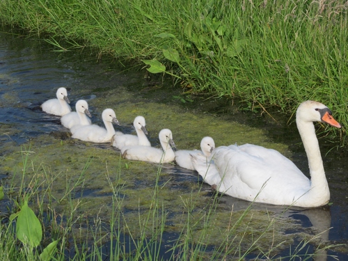 Tag: erba, acqua, cigno, bianco, cigni, cuccioli, verde, uccelli, fila.