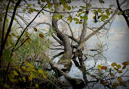 Tag: foglie, acqua, rami, tronchi, riflesso, tronco, alberi, verde, erba, riflessi, albero, nebbia.