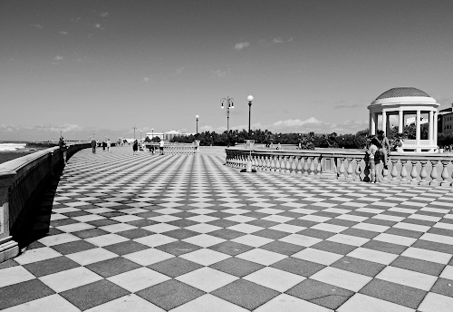 Foto dell'autore mavi80 candidata al contest fotografico piastrelle su Dizy. Data inserimento: domenica 7 maggio 2023. Titolo: Scacchi bianchi e neri sulla terrazza Mascagni