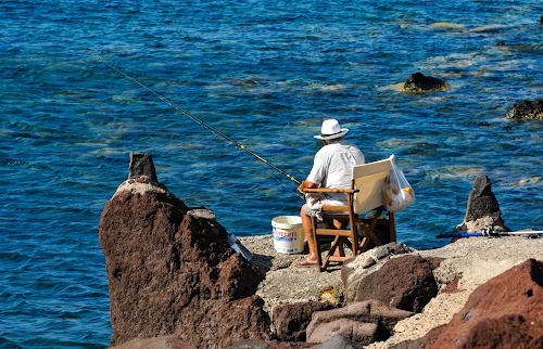 Foto dell'autore Diana Cocco candidata al contest fotografico pescatore su Dizy. Data inserimento: domenica 28 maggio 2023. Titolo: Pescatore ad Akrotiri - Santorini