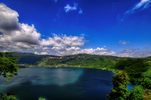 Tag: lago, nuvole, verde, panorama, blu, alberi, acqua, colline, cielo, montagna.