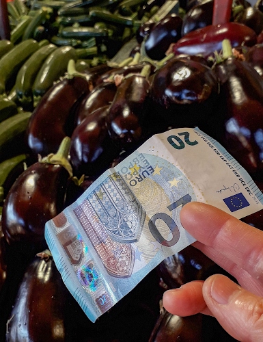 Foto dell'autore Diana Cocco candidata al contest fotografico banconote su Dizy. Data inserimento: mercoledì 15 marzo 2023. Titolo: Banconote per il fruttivendolo