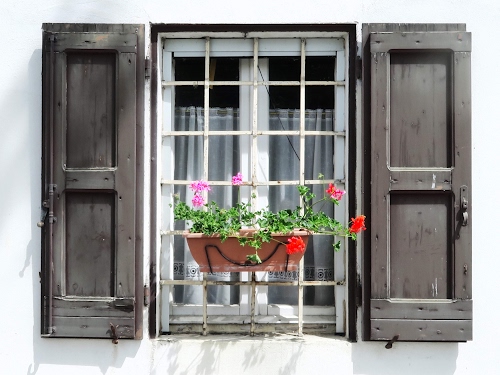 Tag: finestra, vaso, fiori, grata, legno, tendine, gerani, rosso, tende, bianco, scuri, persiane, verde, grigio, ferro, vetri, foglie, sbarre, grate, ante.