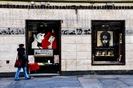 Tag: negozio, vetrina, scarpe, scatole, rosso, giallo, verde, zaini, faretti, colori, quadrati, vetrine, borse, cubi, vendita, esposizione.