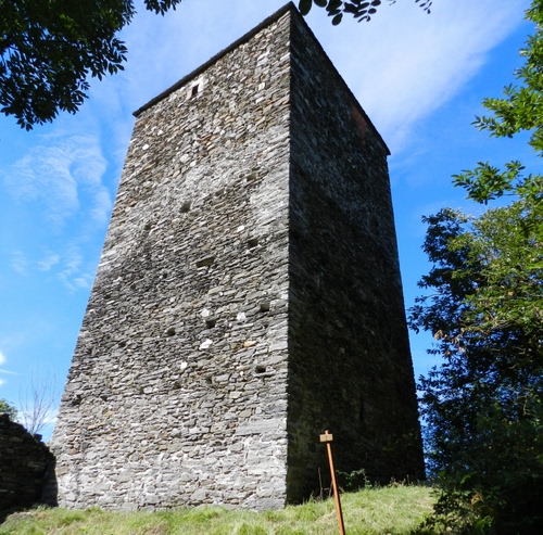 Tag: torre, cielo, alberi, nuvole, pietra, erba, prato, verde, palo, piante, pietre, foglie, feritoie, mattoni, alta.